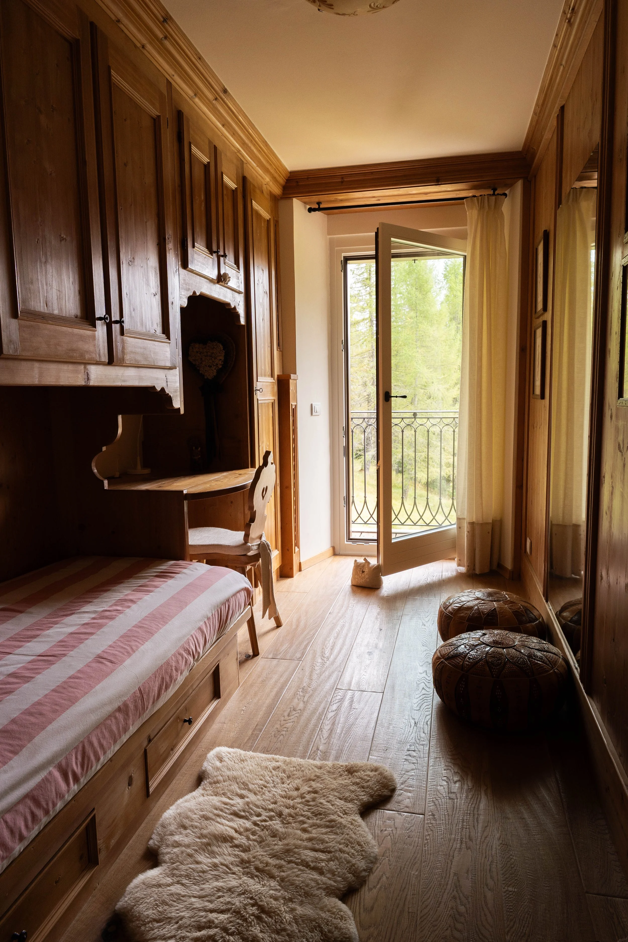 Gli arredi interni in legno sono realizzati da falegnami. “Natura fuori, comfort dentro”.
